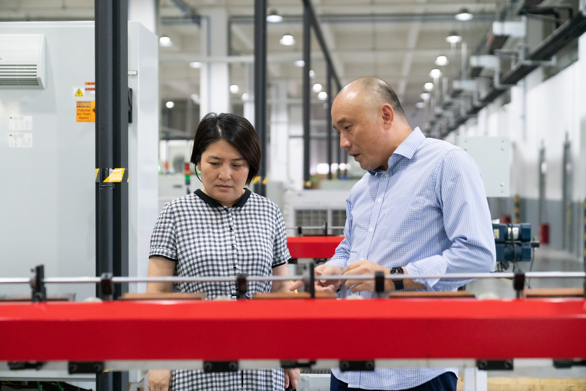 (On the left is Ms. Zonggang, deputy director of Changzhou Bureau of Industry and Information Technology and on the right is Mr. Ding Quanjun, General Manager of DINGS’)
