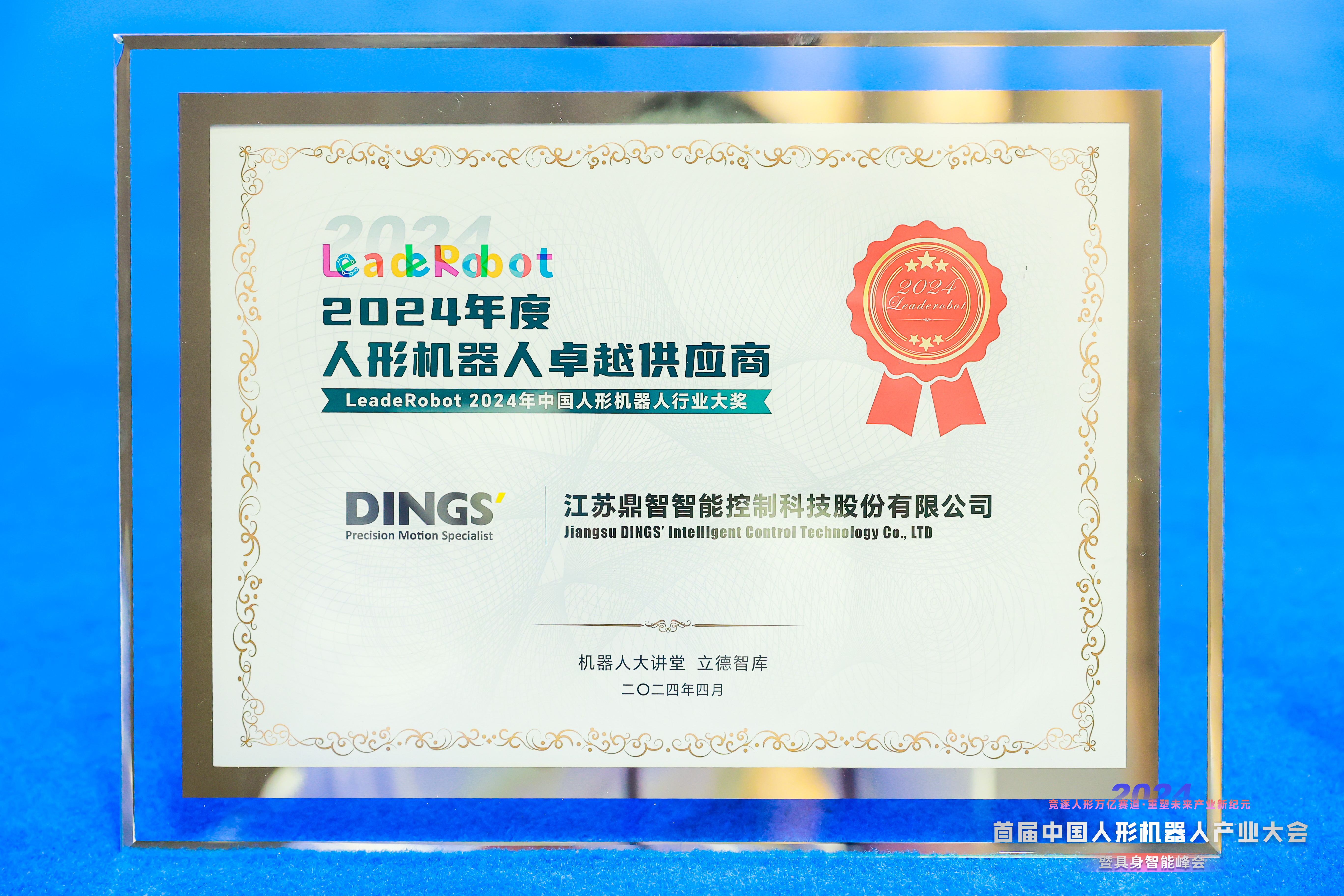 The LeadeRobot awards are rigorously selected and evaluated by the expert jury of the conference. These awards acknowledge companies that have made significant contributions to the research, development, production, and service of robot parts within the field of humanoid robots, receiving high recognition from various sectors including industry, government, and finance. The selection criteria include the stability and efficiency of the supply chain, excellence in service quality, depth and breadth of technical cooperation, as well as the innovation and practicality of core driving technologies. During the evaluation, the conference deeply assessed the overall strength of participating companies in aspects such as parts design, production, supply, service, and technical cooperation. Special emphasis was placed on the real-world performance of components and their crucial role in enhancing the overall performance of humanoid robots and advancing the development of the industry chain. Winning the LeadeRobot award this time fully demonstrated our strengths in research and manufacturing of core components for humanoid robots. JIANGSU DINGS’ will take this award as an opportunity to continue deepening research, supporting the innovation of humanoid robot technology, and achieving rapid development.