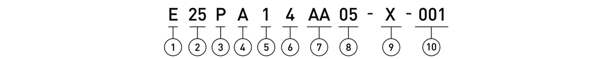 | ① Type de moteur | E = Externe N = Non-captif K = Captif |