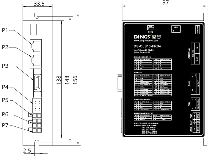 | Control method | Pulse-direction control / RS485 communication control | ||||