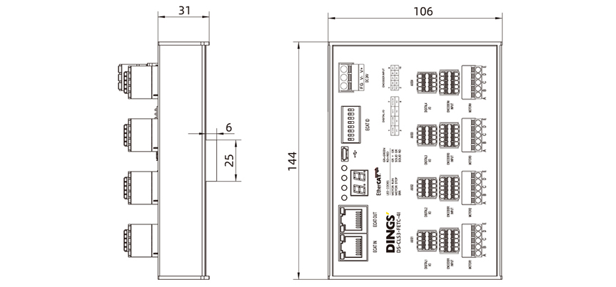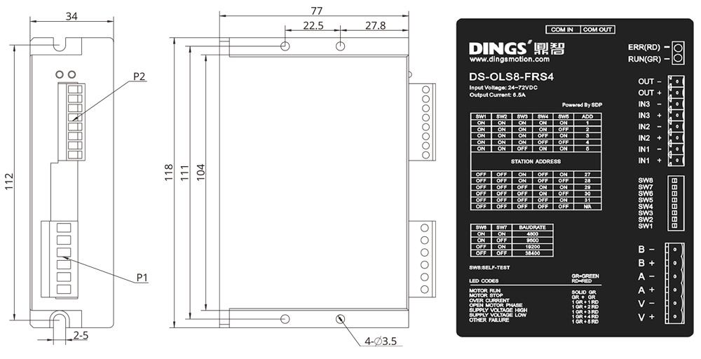 Signal 24V sélectionnable par DIP | Entrée opto-isolée : H = 18–28V, L = 0–0.8V, courant d'entrée 6–15mA, fréquence de réponse maximale 200kHz |