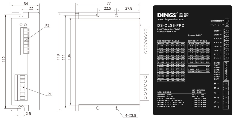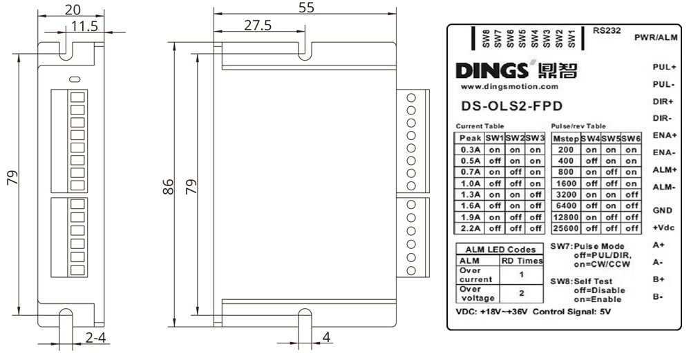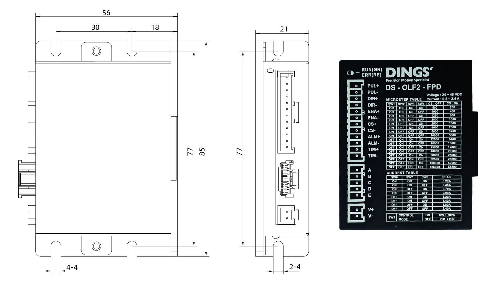 | Adapted motor | 2-phase hybrid stepper motor, max supported current : 4.5A (max.) | ||||