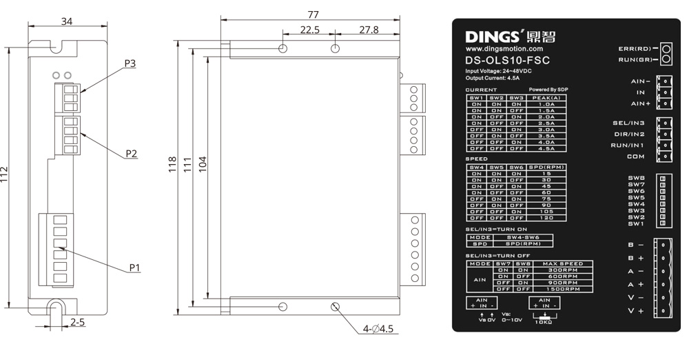 | Output current | 0.1A - 4.5A / phase (max.) | ||||