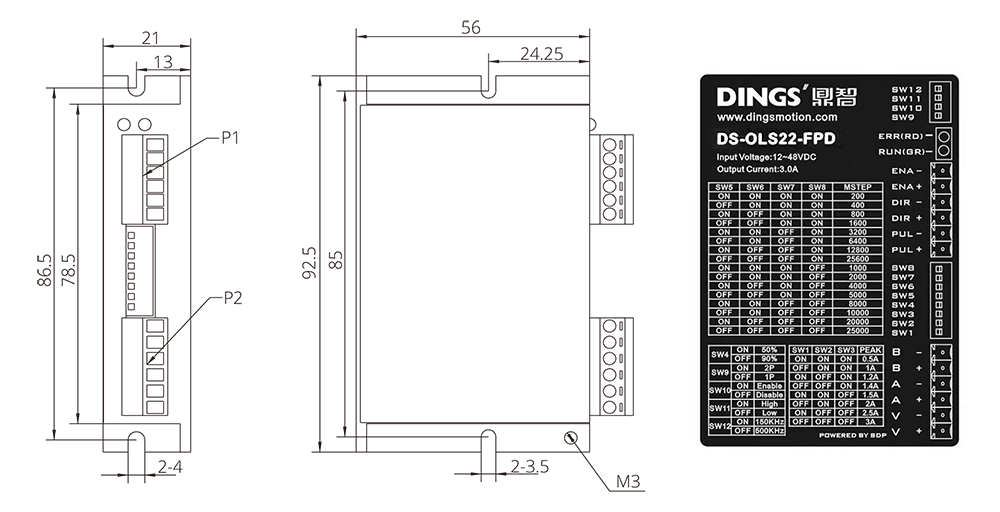 | Moteur adapté | Moteurs pas à pas hybrides à 2/3/5 phases, courant maximal supporté : 3.0A (max.) | ||||