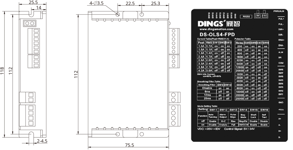 DINGS propose 3 pilotes de micro-pas différents basés sur le mode d'impulsion et de direction. De plus, une électronique autonome en boucle fermée dynamique est disponible.